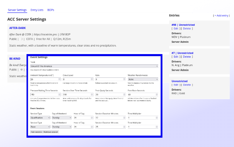 Every lap run on Racetrim's ACC servers flows into a network of results and driver statistics data.